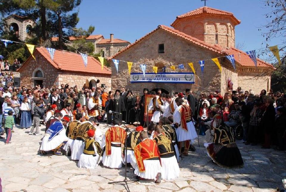 Αναχώρηση από το γραφείο μας στις 7.30 με στάση καθοδόν για την ένδοξη Μονή της Αγίας Λαύρας στα Καλάβρυτα. Θα παρακολουθήσουμε τις επετειακές εκδηλώσεις στο προαύλιο της Μονής και την αναπαράσταση της ορκωμοσίας των Αγωνιστών και κήρυξης της Επανάστασης του 1821. Παραμονή για γεύμα και το απόγευμα θα επισκεφτούμε την Ιερά Μονή του Μεγάλου Σπηλαίου η οποία έχει χτιστεί κυριολεκτικά πάνω σε απόκρημνο βράχο. Επιστροφή στην Αθήνα με στάση καθοδόν.
